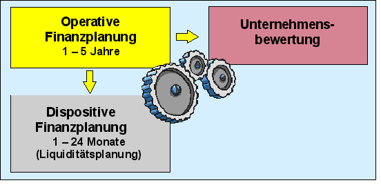 Das eigentliche Kernstück von FINANCE ist die operativen Finanzplanung. Die Module dispositive Finanzplanung, Debt Capacity und Unternehmensbewertung sind mit dem Kernmodul, der operativen Finanzplanung verknüpft. Damit ist die automatische Übertragung der Daten gewährleistet.